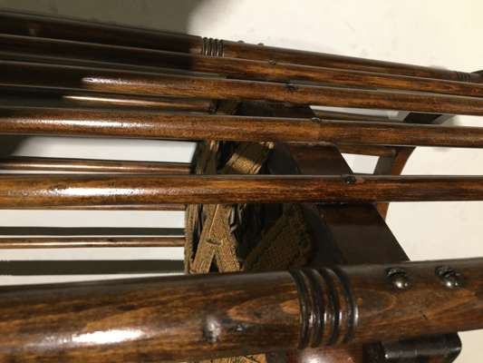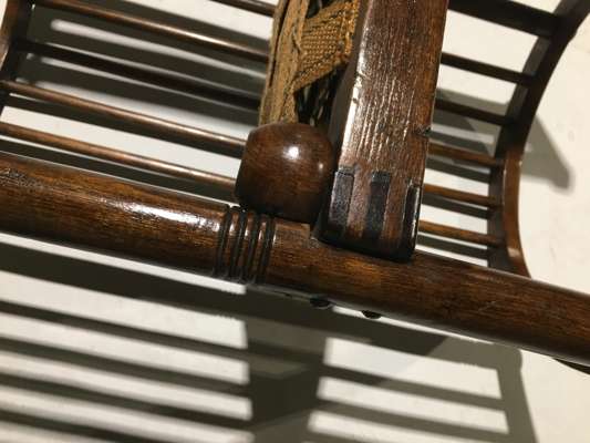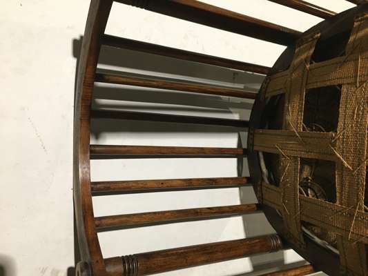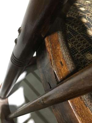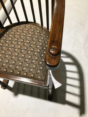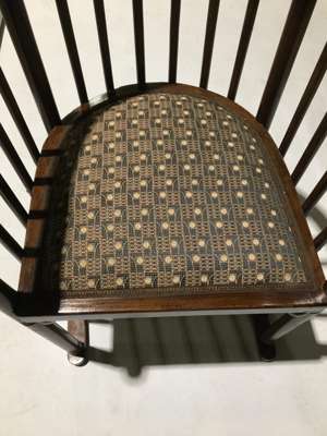 stained and bent beechwood, with original upholstered seat and later Backhausen cover to a Hoffmann design