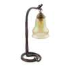 patinated bronze, iridescent Loetz glass, brass fitting