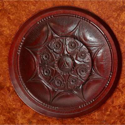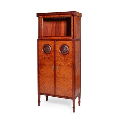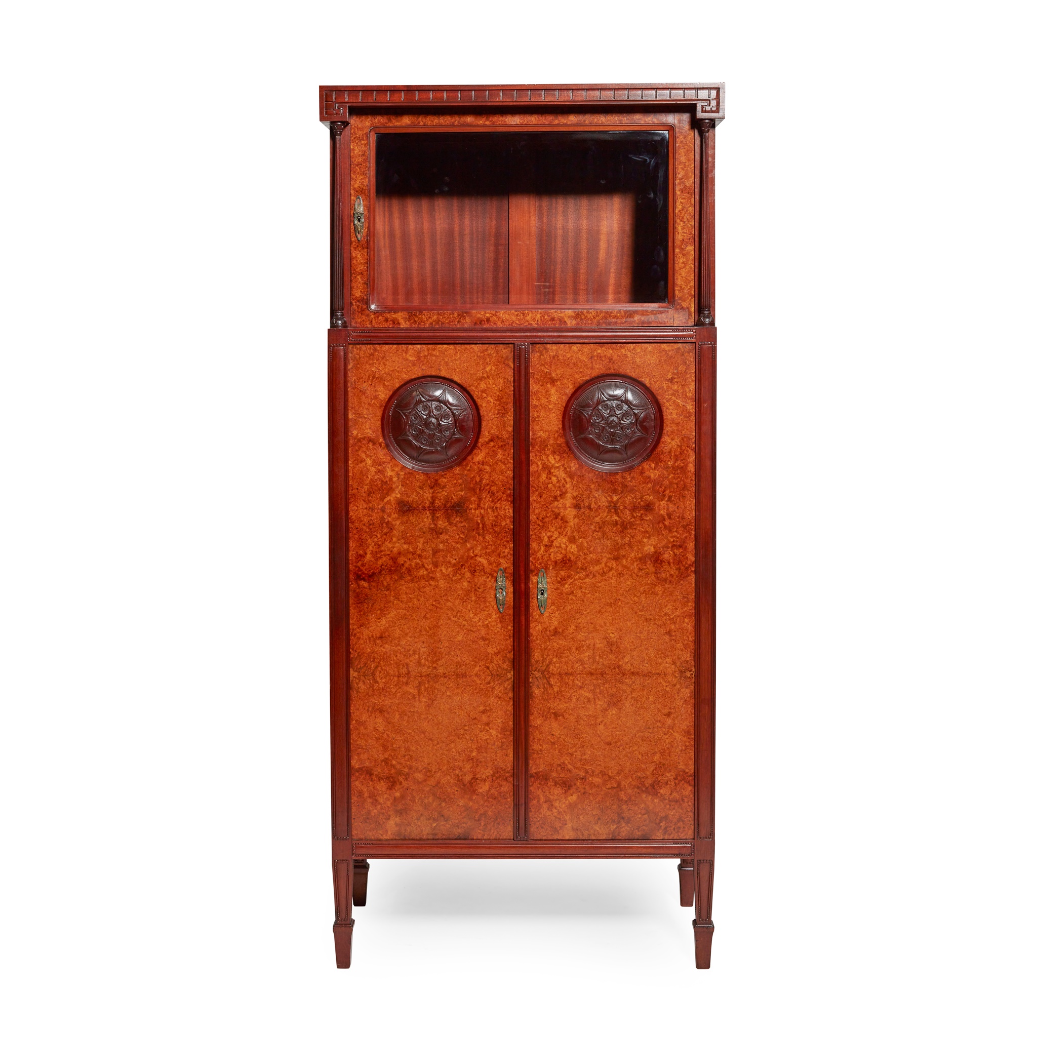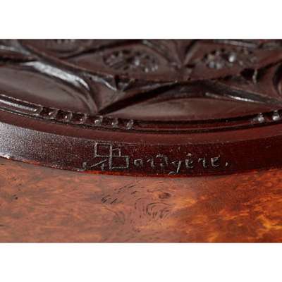 mahogany, burr walnut, glass, signed to one roundel G BARDYÈRE