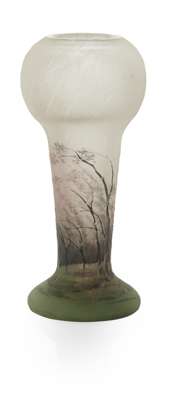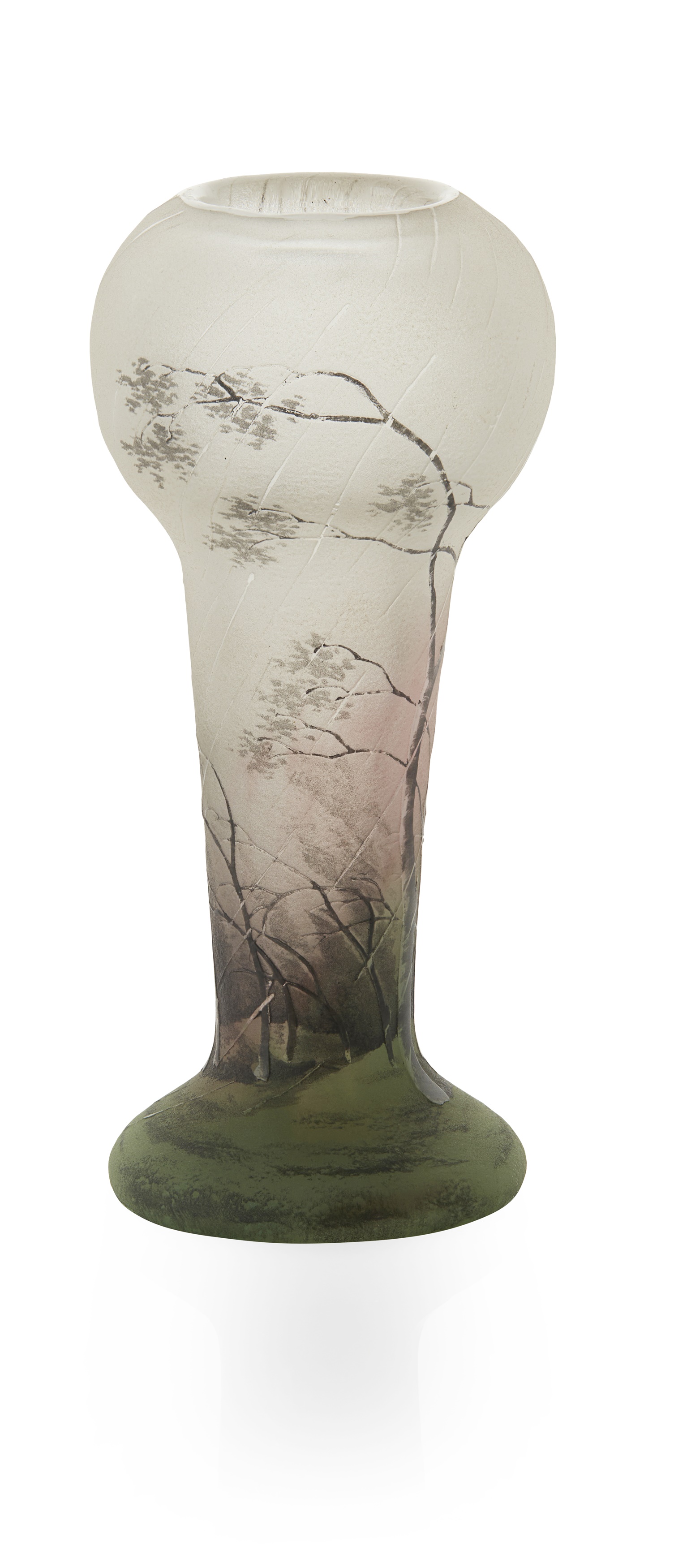 frosted glass, acid-etched and enamelled, signed in enamel DAUM/ NANCY/ *P., with the Cross of Lorraine