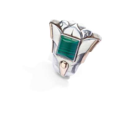 silver, 18ct gold and malachite, partial mark for French standard of silver for 950, partial maker's mark