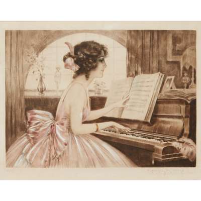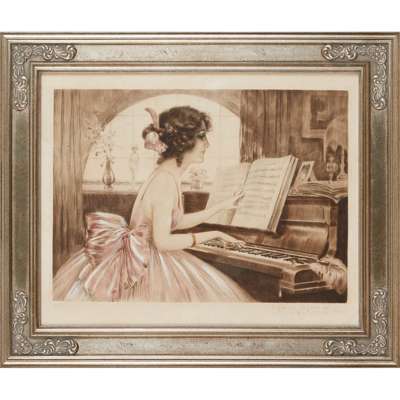 to include POWDER PUFF, signed in pencil, numbered 329 with blindstamp, 45cm x 35cm; AT THE PIANO, signed in pencil, inscribed 98/1/0, 33cm x 45.5cm; LIPSTICK, signed in pencil and inscribed 60 with blindstamp, 32.5cm x 40.5cm; together with PIERROT IN LOVE, signed in pencil A. SOLANGES, editioned 52/250, 38.5cm x 47.5cm