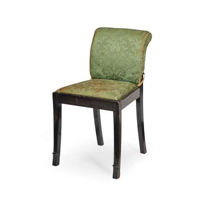 ripple sycamore veneer on mahogany construction with silver, ebonised and green lacquered detailing, upholstery