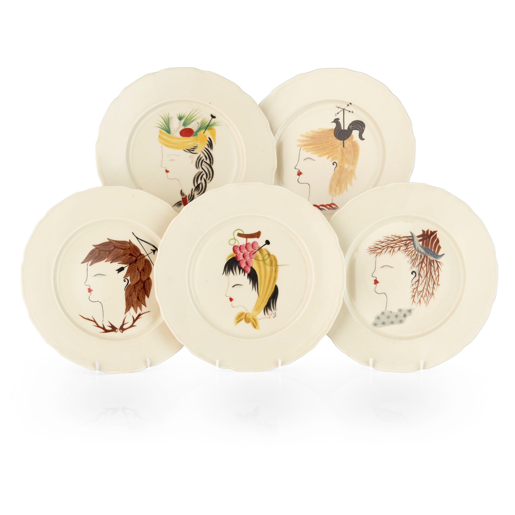 painted, printed and glazed ceramic, signed to reverse, one with CG monogram