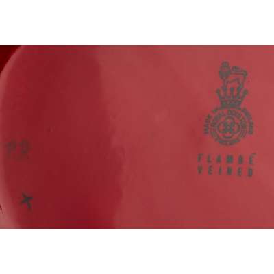 flambé glazed earthenware, each with printed factory stamp and painted initials PD, one with impressed mark