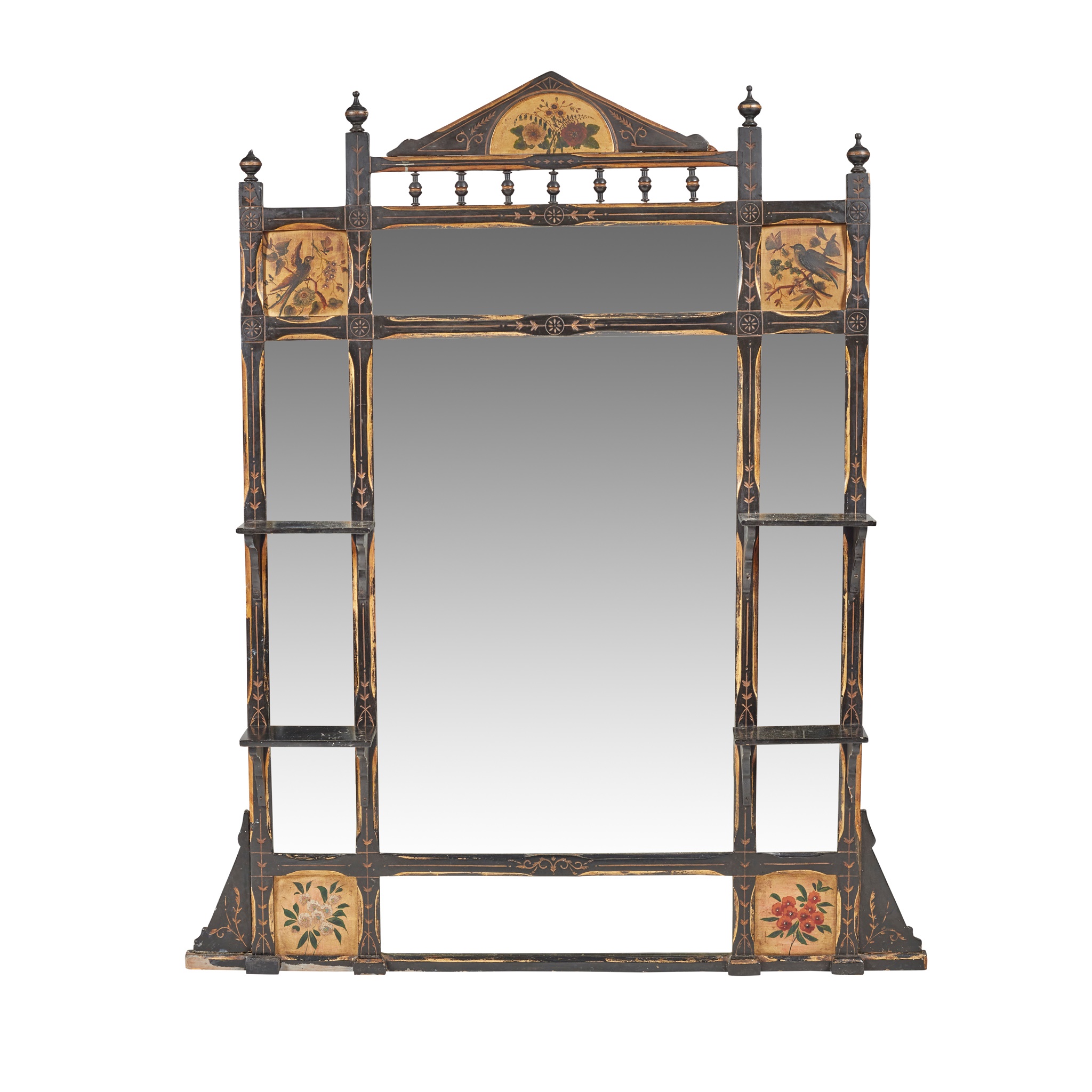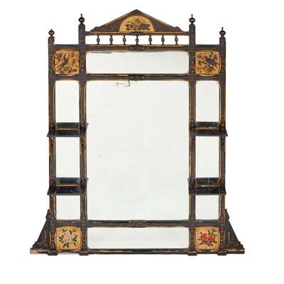 ebonised and gilded wood, polychrome decoration, mirrored glass