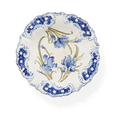 glazed earthenware, painted WM/ DES in green, printed ‘Florian Ware’ factory stamp, impressed marks (indistinct), 14.5cm diameter; together with a 'DUBARRY WARE' PLATE, for James Macintyre & Co., glazed earthenware, printed factory stamp, registration number 211991, 27cm diameter