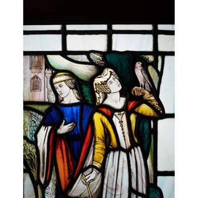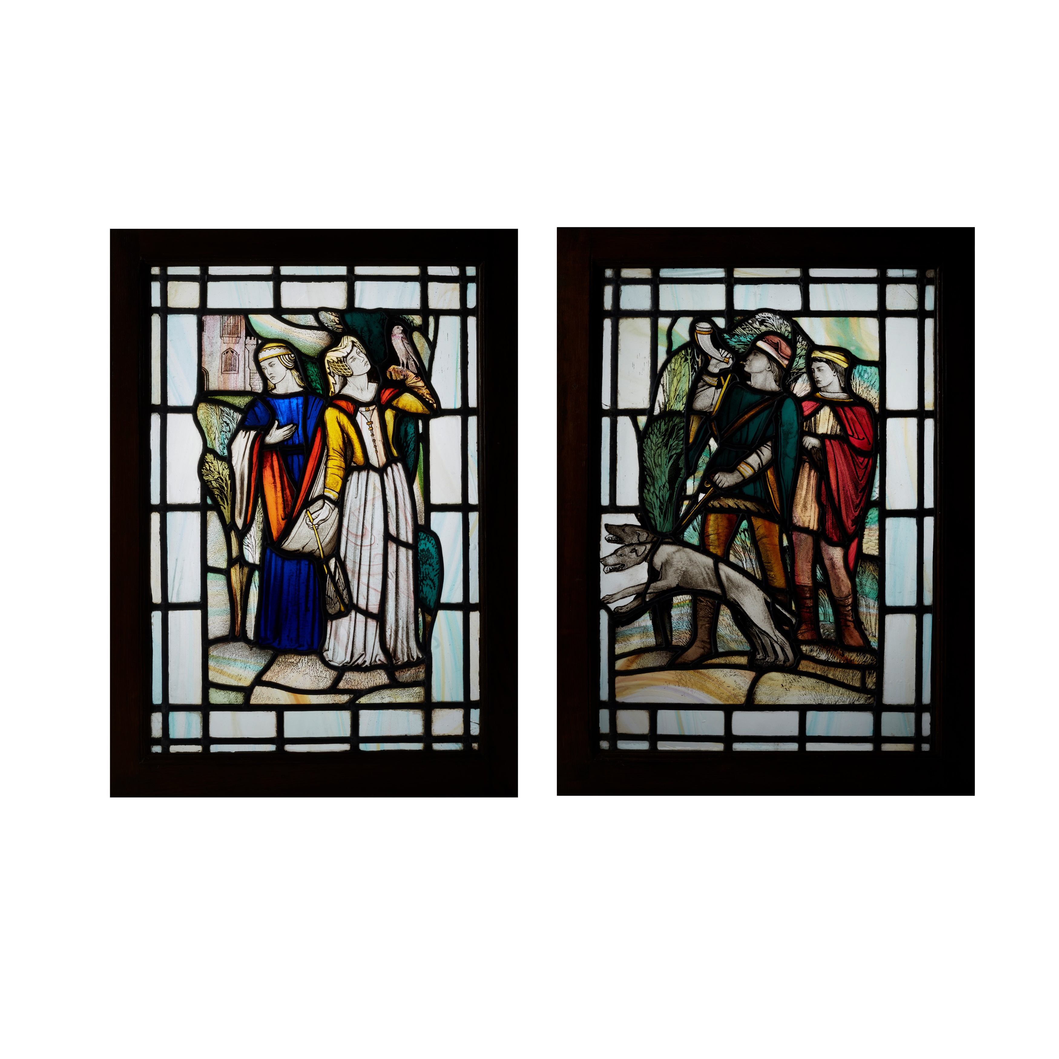 PAIR OF ARTS & CRAFTS STAINED GLASS PANELS, CIRCA 1926
