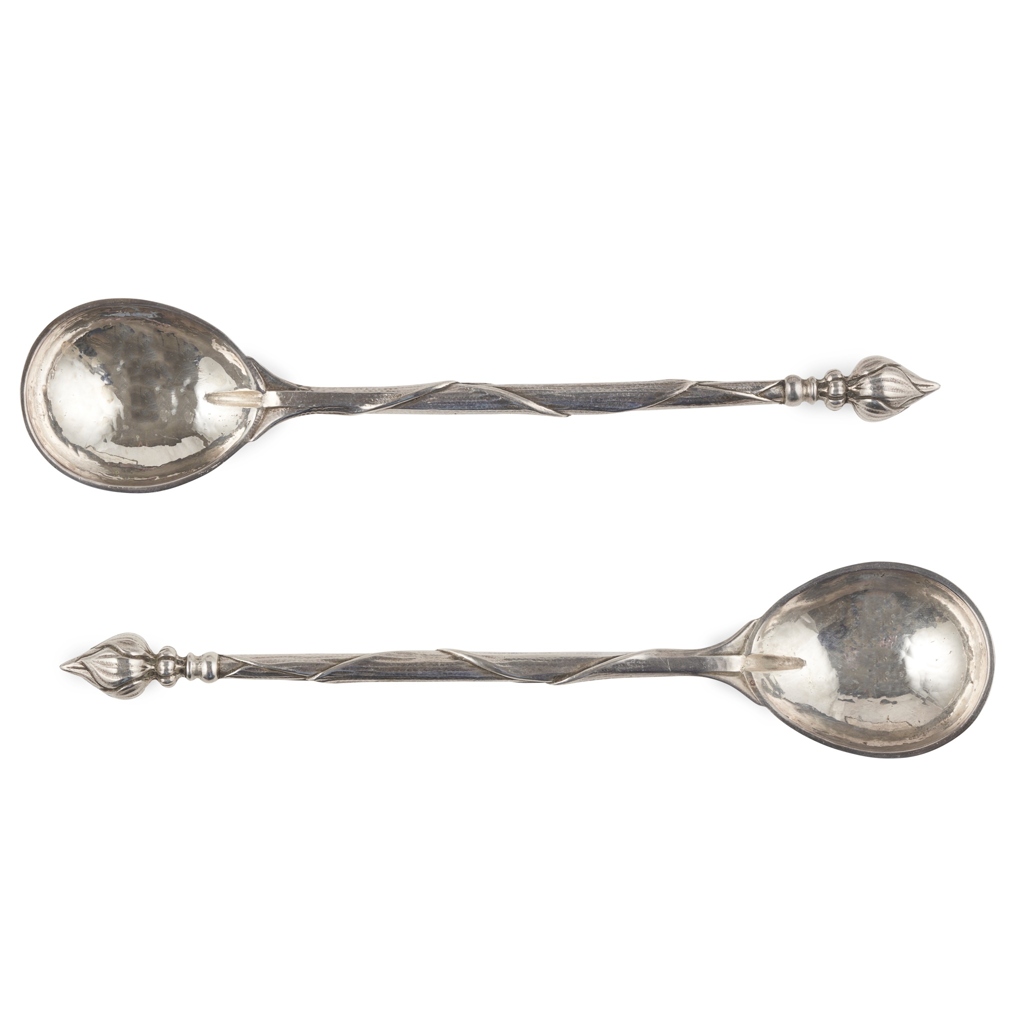 PAIR OF ARTS & CRAFTS SERVING SPOONS, 1936