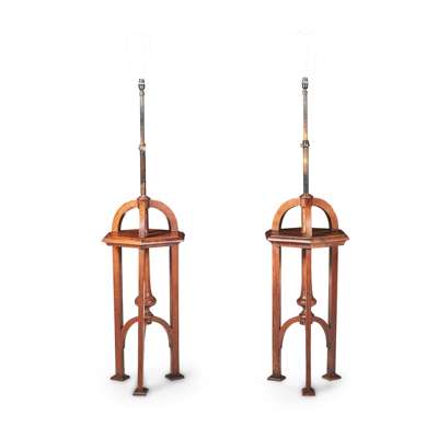 PAIR OF ARTS & CRAFTS EXTENDING STANDARD LAMPS, CIRCA 1900