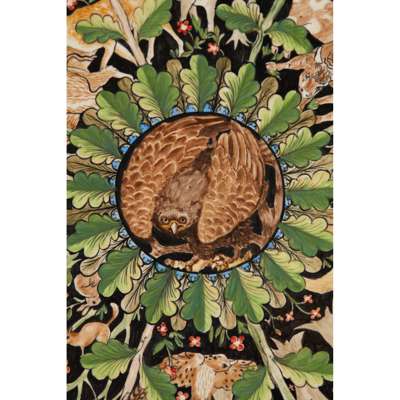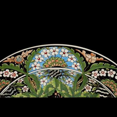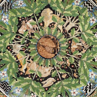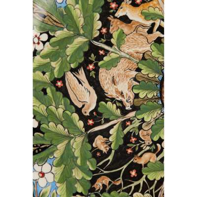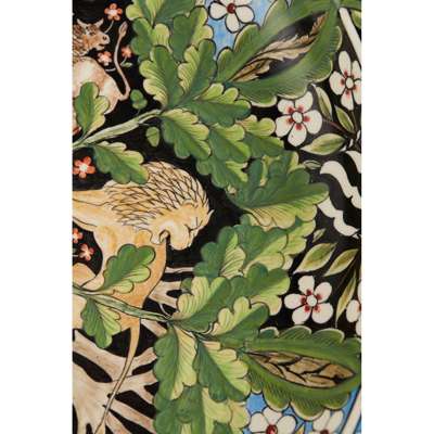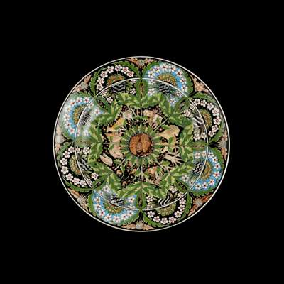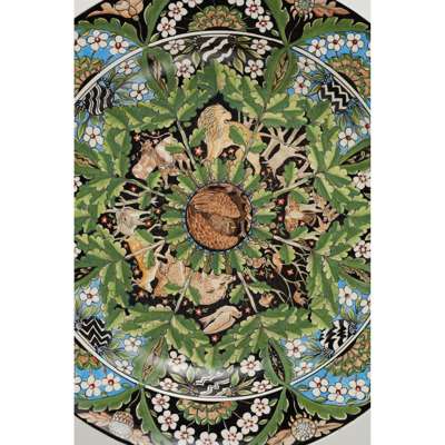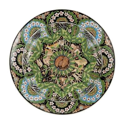 Note: Powell was inspired by the designs of the Arts & Crafts Movement, and the influence of William Morris and Edward Burne-Jones can be seen in the decoration of this dish: the animals and foliage remind, particularly, of tapestries made by Morris & Co at Merton Abbey. Many of Powell’s designs are based on plant and animal motifs, others feature architectural views and calligraphy. He and his wife Louise Powell also created simpler patterns for factory production during the 1920s-30s. Mabel Tatton started decorating at Etruria for Wedgwoods in 1907 until 1914 when she left to study at Hornsey College, Middlesex. She returned to the firm as head of the painting and enamelling department from 1920 until 1928. Her work was shown at the Paris Exhibition in 1925. The appearance of Tatton's signature in gilt on the rim marks this piece out as an exceptional example of her decorating skills.