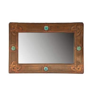 patinated copper, with Ruskin roundels, mirrored glass, traces of paper label verso
