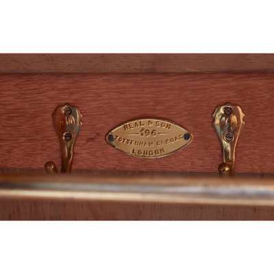 oak, with iron fittings and mirrored glass plate, applied oval metal label HEAL & SON/ 196/ TOTTENHAM CT/ LONDON