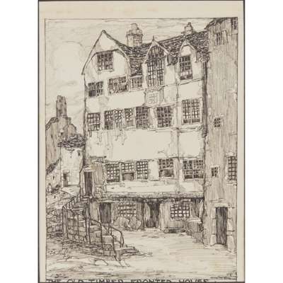 pen and ink on vellum, an original illustration for 'The Grey City of the North', signed lower right JESSIE M. KING