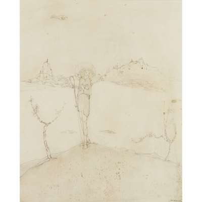 pen and ink with wash and watercolour on vellum, signed lower right JESSIE M. KING