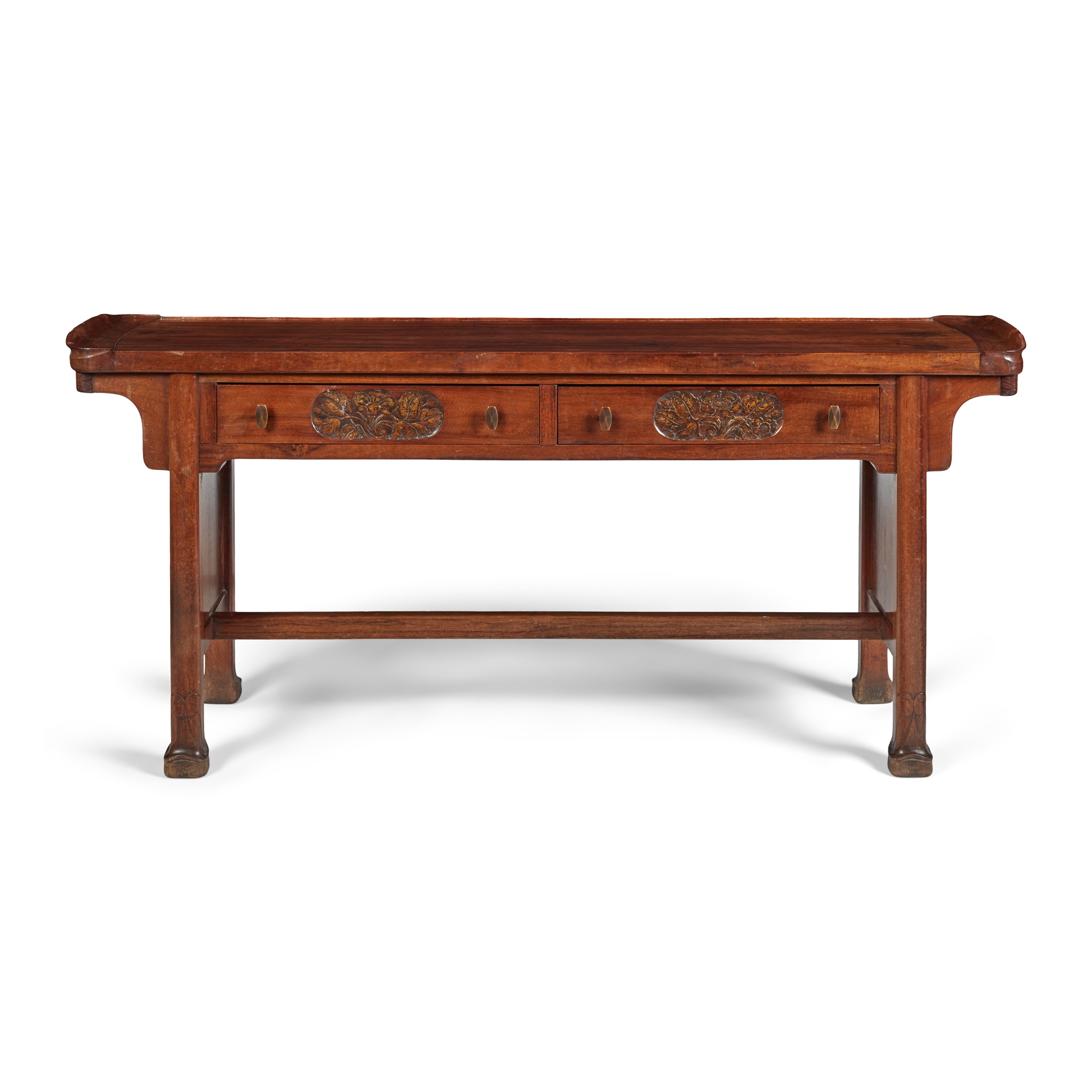 walnut with bronze handles, stamped to drawer WHYTOCK & REID, EDINBURGH