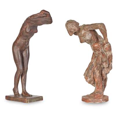 patinated plaster, 28cm high; together with a NUDE STUDY, painted plaster maquette, 31cm high; and an UNDRESSING FIGURE, plaster maquette, signed to base BENNO SCHOTZ 1927 with edition */10, 43.5cm high