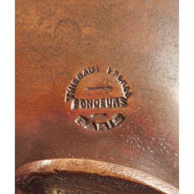 patinated bronze, on a slate plinth, signed in the bronze BOISSEAU, foundry stamp for Thiébaut Frères