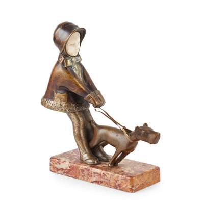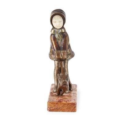 bronze, ivory, on marble base