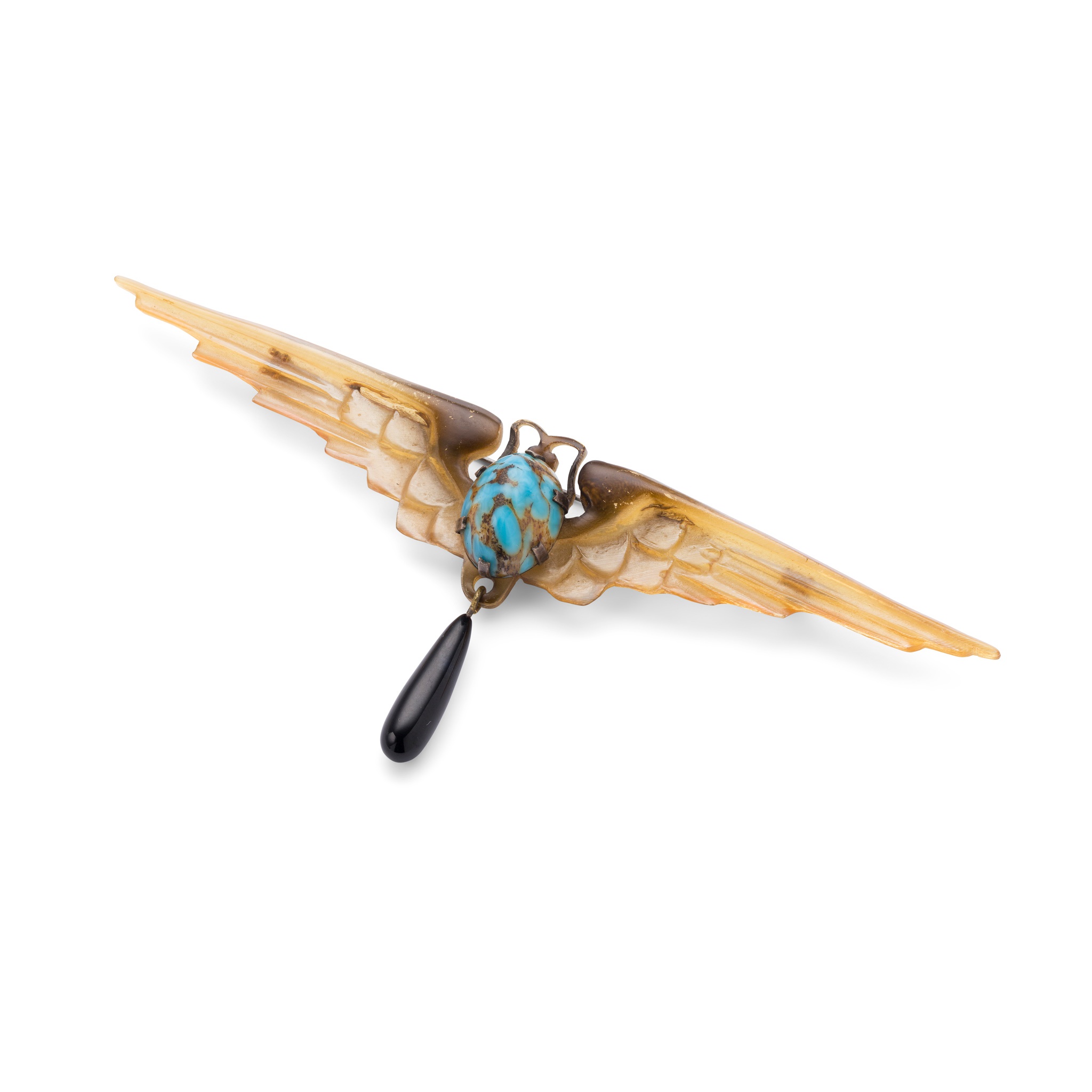 horn, set with turquoise cabochon and with black glass drop, signed to reverse GIP, within Liberty & Co card box.