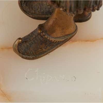 patinated and gilt bronze, raised on an onyx base, signed to the base CHIPARUS