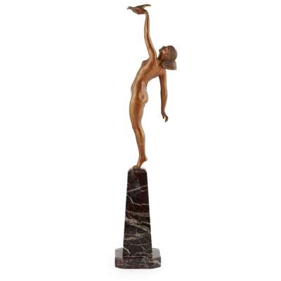 patinated bronze, on a marble base, signed to the base LE FAGUAYS