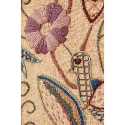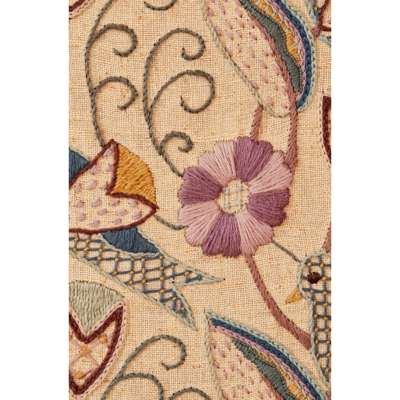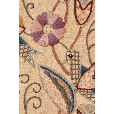 crewelwork embroidery, wool threads on a linen ground stretched on a timber frame