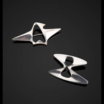 model 369 and 340, silver, stamped GEORG JENSEN/ 925S/ DENMARK/ 369 (with import marks for 1974) and 340