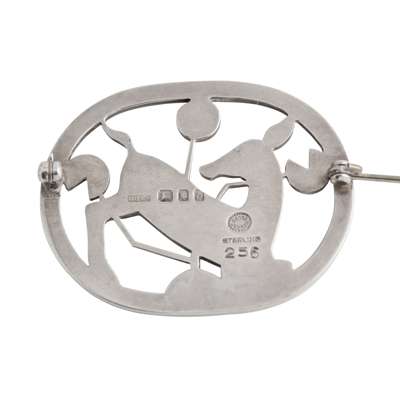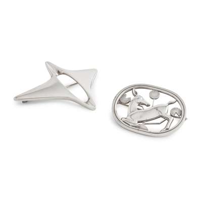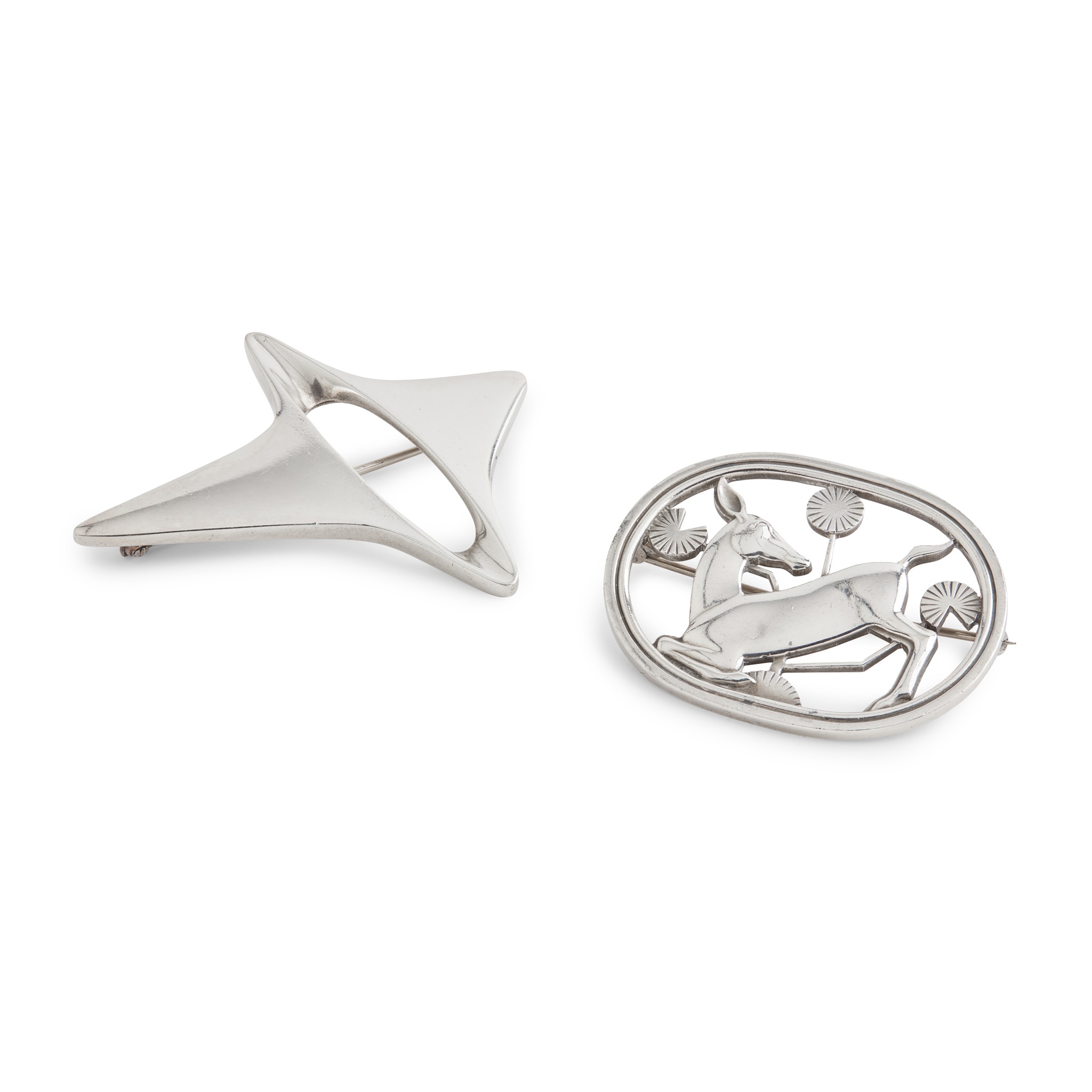 sterling silver, stamped GEORG JENSEN/ 925S/ DENMARK/ 339, 6cm across; and a GEORG JENSEN 'KNEELING FAWN' BROOCH, sterling silver, stamped marks JG/ STERLING/ 256, IMPORT MARKS FOR 1957, 4.6cm across