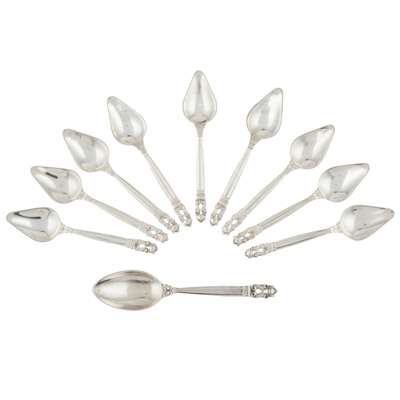 sterling silver, stamped GEORG JENSEN/ 925S, import marks for 1926, 14.5cm long; and a DESSERT SPOON, sterling silver, stamped GJ/ 925S, import marks for 1931, 17.2cm long
