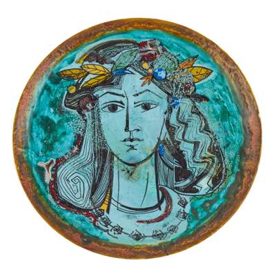painted and glazed earthenware, signed and dated verso M. LOGLI/ URBINO/ 1960