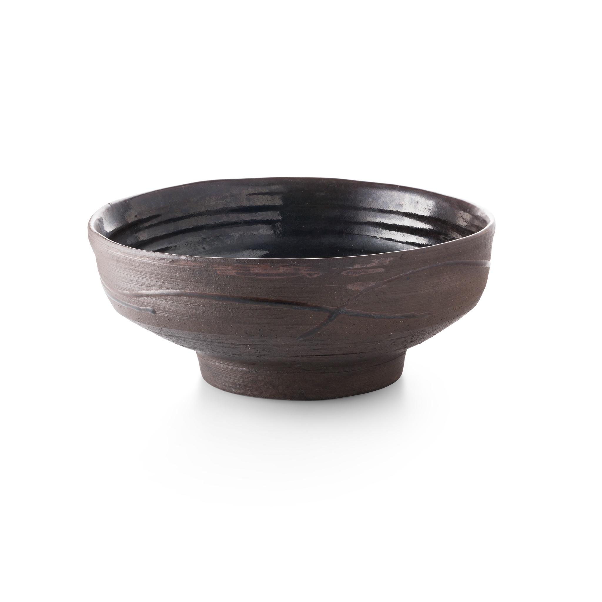 stoneware with black glaze splashes, impressed artist's and pottery seals