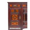 rosewood and mahogany, with specimen wood marquetry inlay and brass fittings, with key