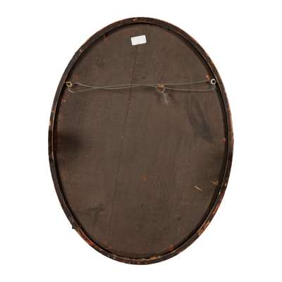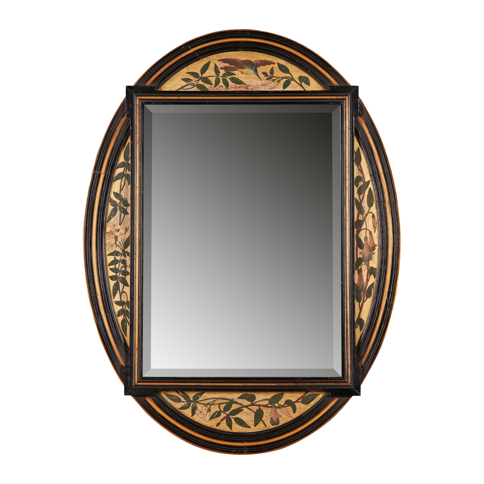 ebonised, gilded and painted wood, with mirrored plate