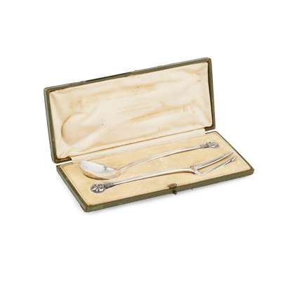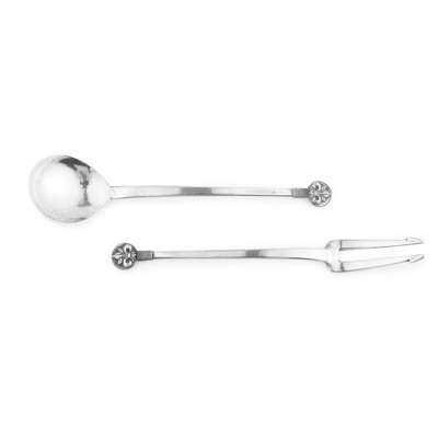 ARTS & CRAFTS PRESERVE SPOON & PICKLE FORK, LONDON 1913