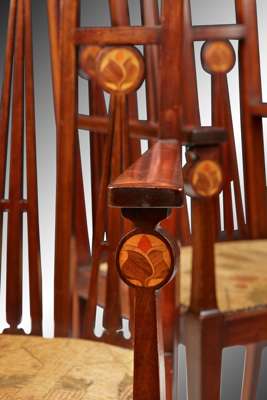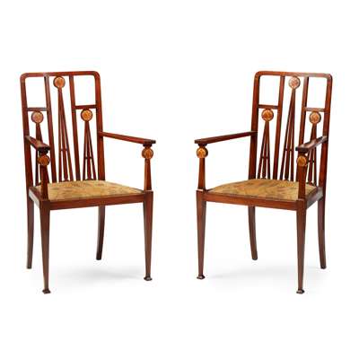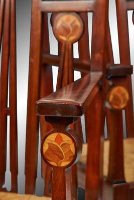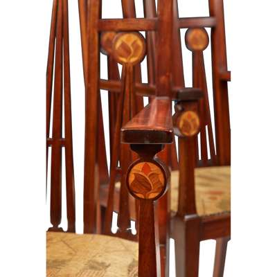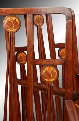 Note: Walton designed the 1903 Arts & Crafts Exhibition Society stand for J.S. Henry, and, it is thought, this parlour suite.