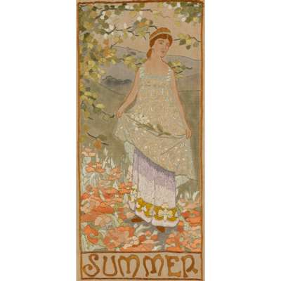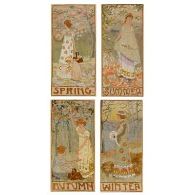 THE SEASONS, FOUR ARTS & CRAFTS EMBROIDERED PANELS, CIRCA 1900