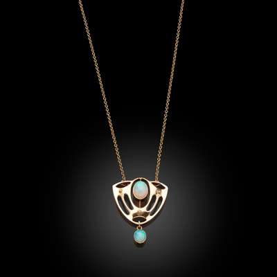 15ct gold, set with opal cabochons, stamped 15CT/ MB&CO