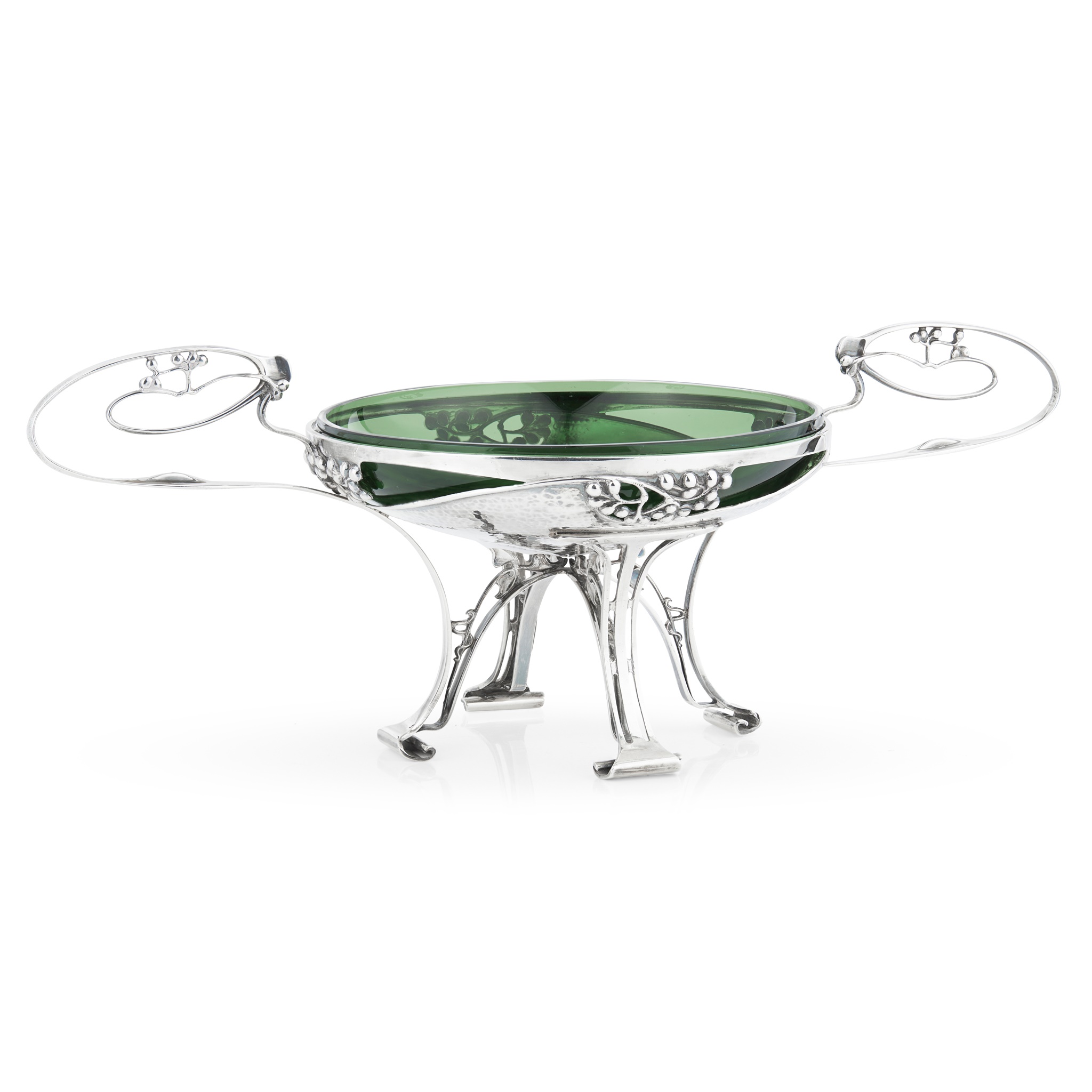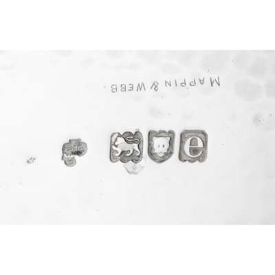 silver, with green glass liner, hallmarked London 1900, stamped MAPPIN & WEBB, incised 46587