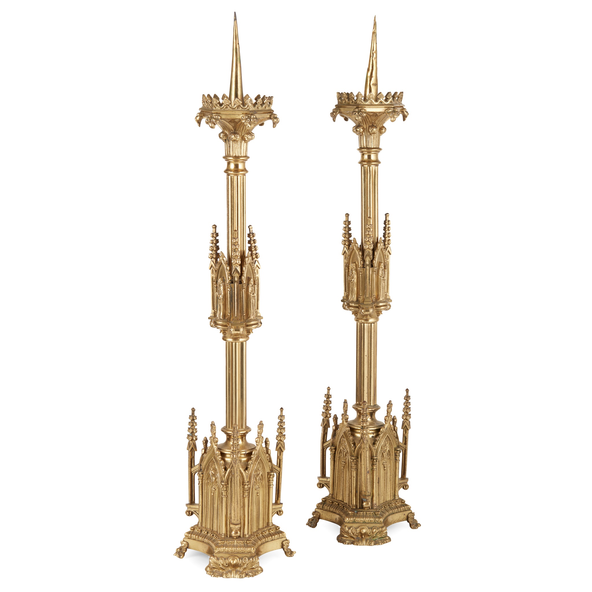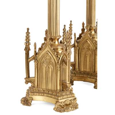 PAIR OF GOTHIC REVIVAL ALTAR CANDLESTICKS, CIRCA 1890