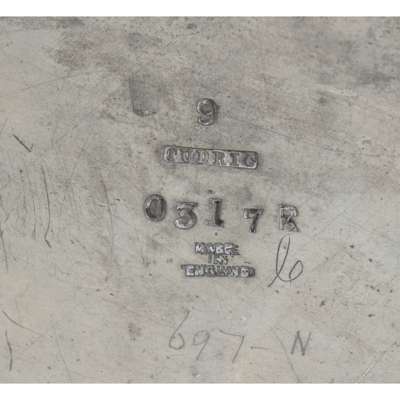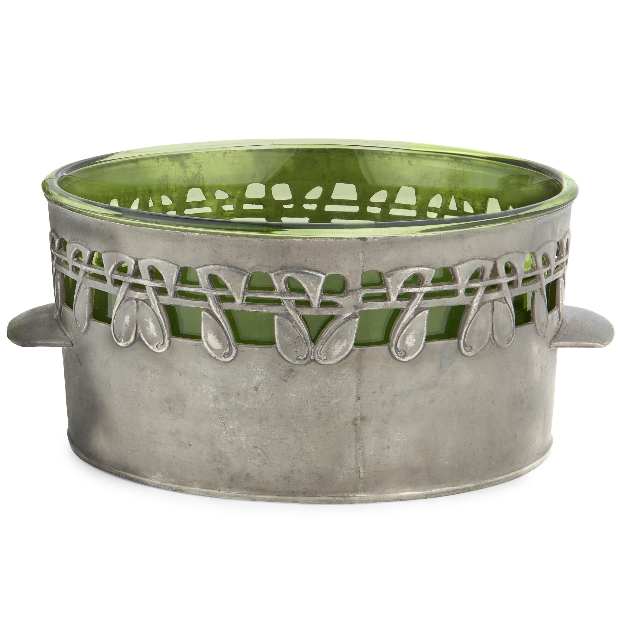pewter, with green glass liner, stamped TUDRIC/ 9/ MADE IN ENGLAND/ 0317R