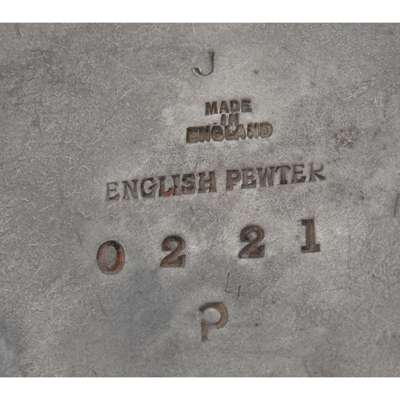 pewter, stamped MADE IN ENGLAND/ J/ ENGLISH PEWTER/ 0221/ P/ MADE BY LIBERTY & CO.