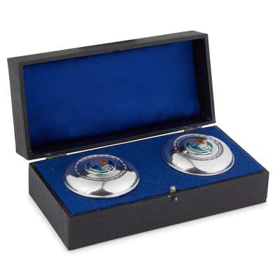 silver and enamel, made by William H. Hasler, stamped marks and hallmarked Birmingham 1925, within fitted box