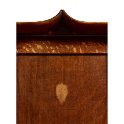 Note: Initially apprenticed in the Glasgow shipbuilding industry, E. A. Taylor trained as an artist at the Glasgow School of Art, where he met Jessie M. King around 1898. Taylor joined the Glasgow cabinetmakers and retailers Wylie & Lochhead as a trainee designer in 1893. His furniture designs for the firm brought him great acclaim with exhibitions at the 1901 Glasgow International Exhibition and, with his fiancée Jessie King, a series of stained-glass panels for the Turin International Exhibition of Modern Decorative Art in 1902. Taylor went on to lecture in furniture design at the Glasgow School of Art from 1903 to 1905. In 1908 he married Jessie King and moved to Manchester to manage and design for George Wragge Ltd where he produced many designs for stained glass. Between 1911 and 1914 the Taylors lived in Paris where they established an art school – the Shealing Atelier. This rare sideboard by Taylor demonstrates his skills as a furniture designer, the inlaid panels characteristic of the burgeoning 'Glasgow Style', the mouldings and cut-out features enlivening the solid form. This example is similar in form to a sideboard designed by Taylor for William Douglas Weir (later Lord Weir) in Glasgow around 1901, following the success of his room for Wylie & Lochhead at the Glasgow International Exhibition the same year.