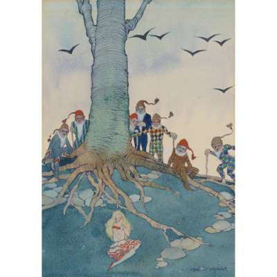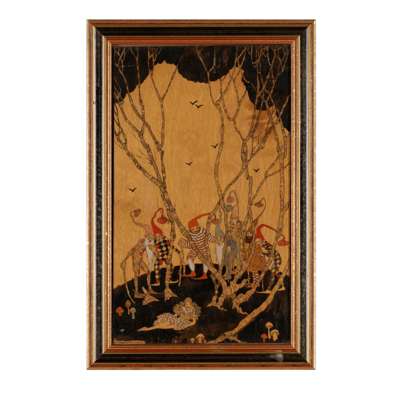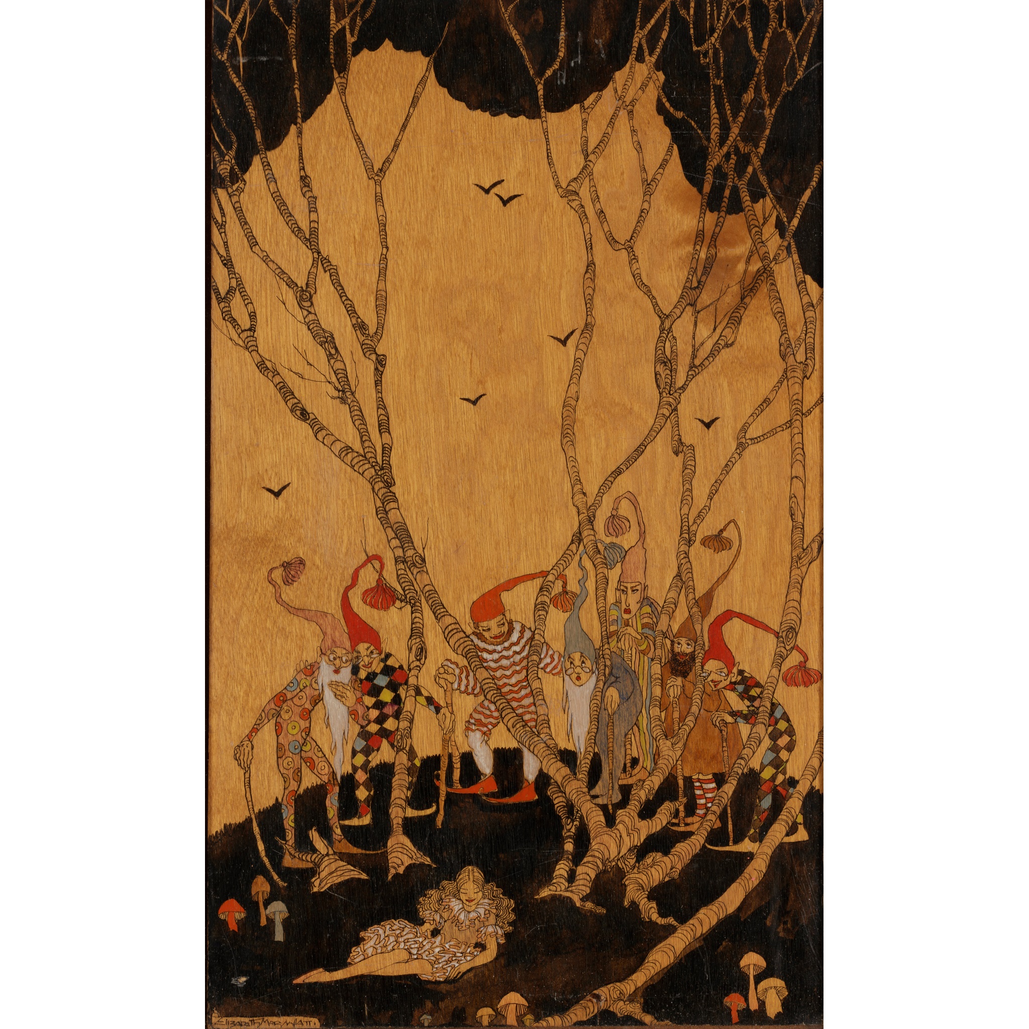 ink, watercolour and bodycolour on wood, signed lower left ELIZABETH MARY WATT