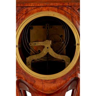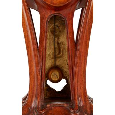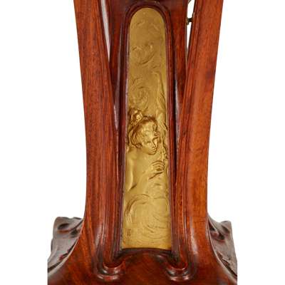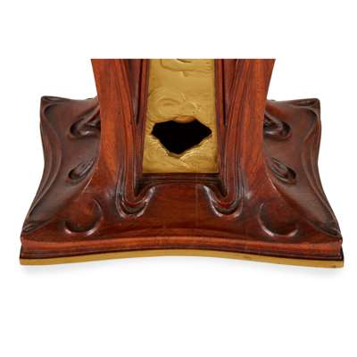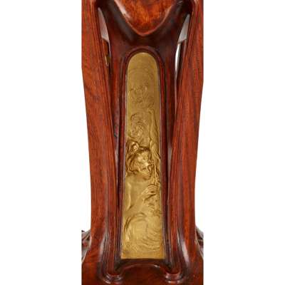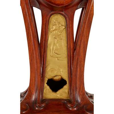 While Charpentier created the sculptural elements, it was the architect and decorator Tony Selmersheim who designed the case of the clock. Regarded as one of the leading Art Nouveau furniture makers, he worked alongside Victor Horta, Maurice Dufrêne and Henry van de Velde on La Maison Moderne, before forming a highly successful partnership with Charles Plumet. As is the case here, his work was characterised by simple forms that emphasised the structure of the piece, and by flowing elongated stem-like lines that reference nature.