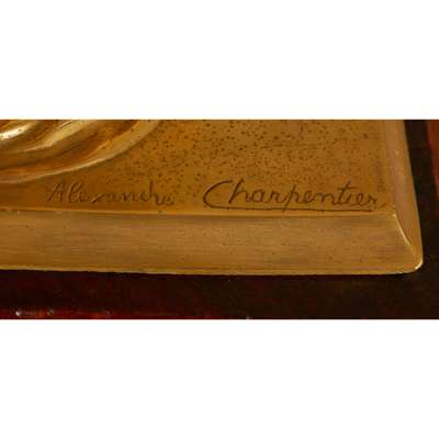 Charpentier had begun his career working for a medal maker and this clock incorporates three panels representing the Fates. He was very much at the forefront of the revival of interest in medal-making and low-relief plaques of the period. This art form very much suited the Art Nouveau ethos and the fascination for whip-lash lines.