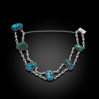 white metal, set with turquoise cabochons, stamped maker's mark/ 800