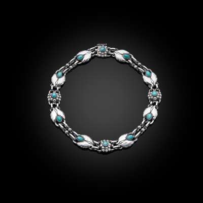 model no.1, first designed 1904, sterling silver, set with blue hardstone cabochons, stamped GEORG JENSEN/ STERLING/ DENMARK/ 1