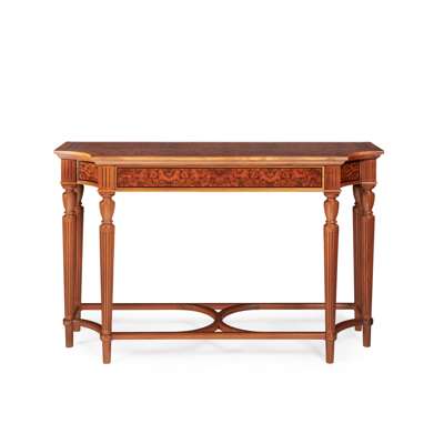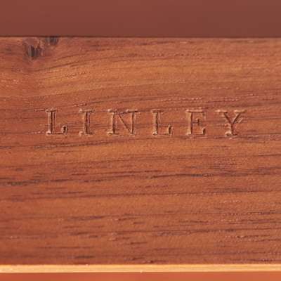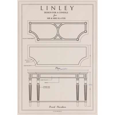 walnut, with inlays of burr walnut and Indian ebony, stamped LINLEY; together with THE ORIGINAL PRINTED DESIGN